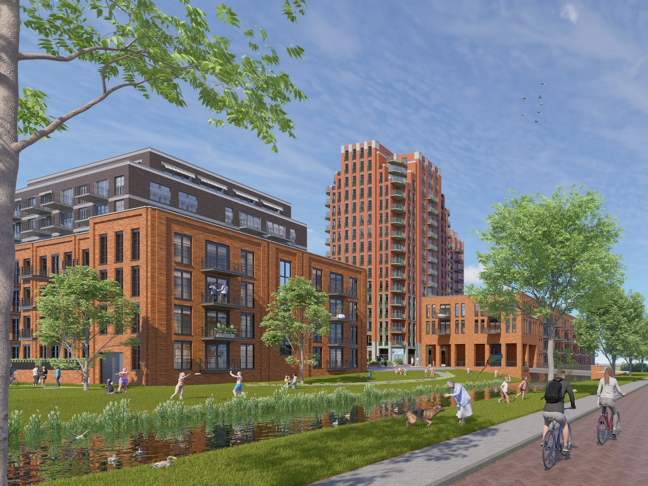 Nieuwbouw van 429 appartementen en 3 commerciële ruimten met halfverdiepte parkergarage